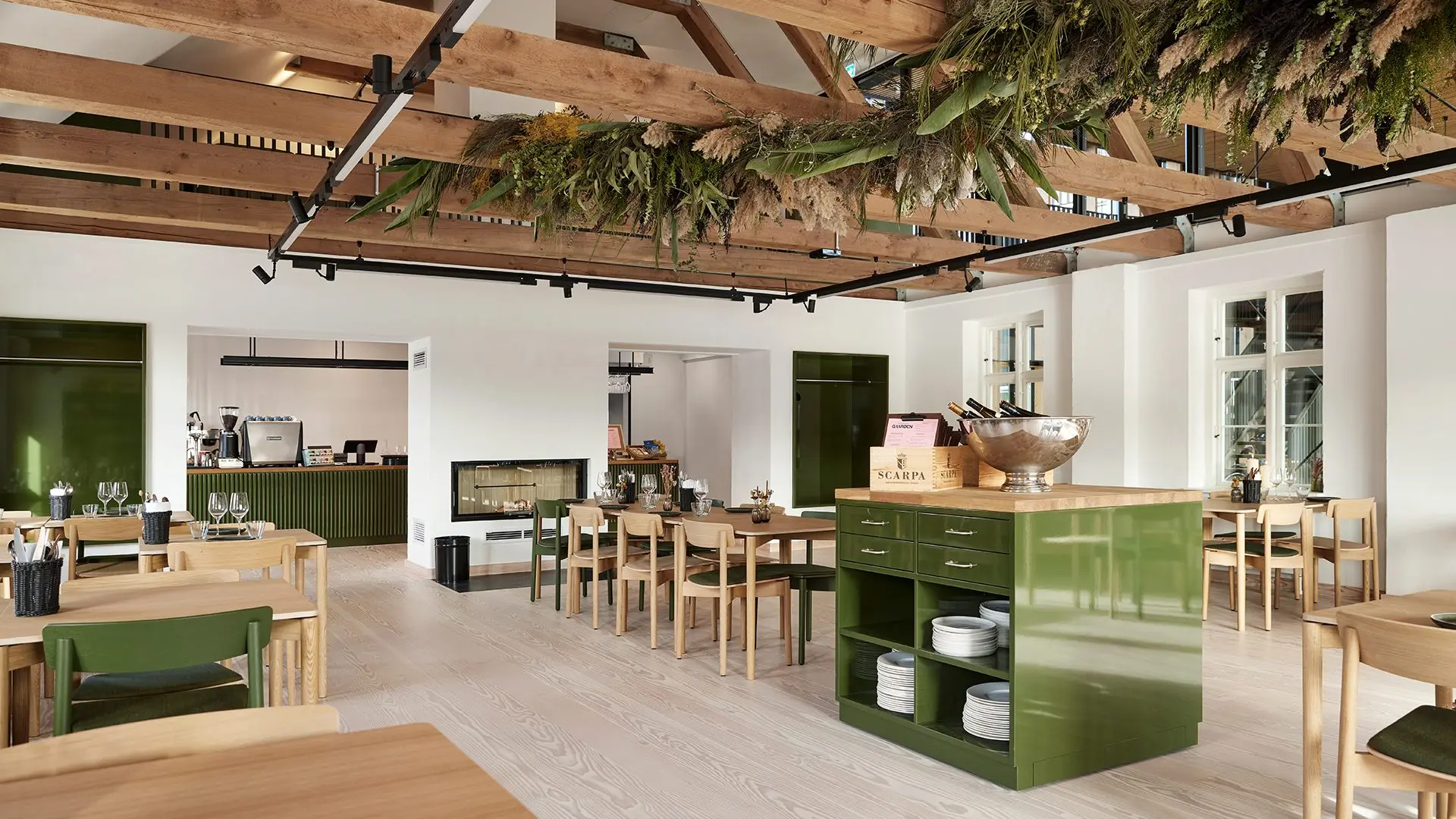 GAARDEN opened in Februrary 2023 in Hvidovre with the vision of being more than just a restaurant. Their aspiration involves empowering local communities through a multifunctional space, where individuals of diverse backgrounds and cultures can connect through dining, coffee, or various events. The old, restored building is now furnished with a selection of Cross Chairs oak oil and custom-made forest green Cross Chairs, all placed around Cross Tables.