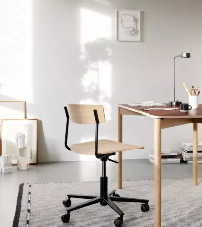 Special attention has been given to the balance of materials in Cross Task Chair’s design. The slender steel tubes lend a light, modern and airy appearance to the chair, whereas the wooden seat and back provide warm, tactile comfort at the contact points. The result is a chair that is easy to move around the home, providing a comfortable, familiar seat wherever you need it.